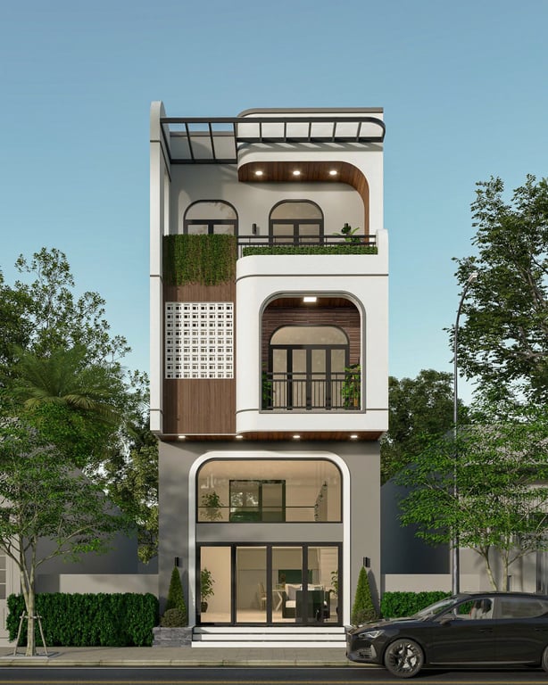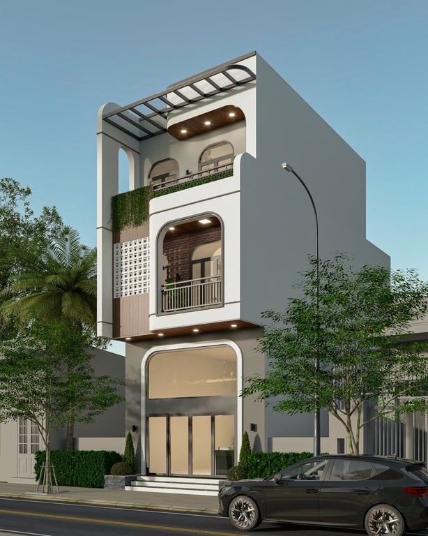 Mẫu nhà ống đẹp 3 tầng mặt tiền 5,5m hiện đại là lựa chọn lý tưởng cho những gia đình mong muốn một không gian sống rộng rãi và tiện nghi. Nhờ lợi thế chiều ngang rộng đến 5m, gia chủ hoàn toàn có thể tận dụng tốt ánh sáng tự nhiên và khả năng thông gió. Khi kết hợp với các chi tiết hiện đại như cửa kính lớn, ban công rộng thoáng với thiết kế tập trung công năng, ngôi nhà sẽ là một tổ ấm đúng nghĩa dành cho các thành viên trong gia đình.